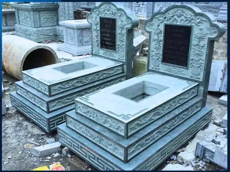Mộ Tam Cấp đá xanh rêu được làm bằng đá xanh rêu tự nhiên nguyên khối .